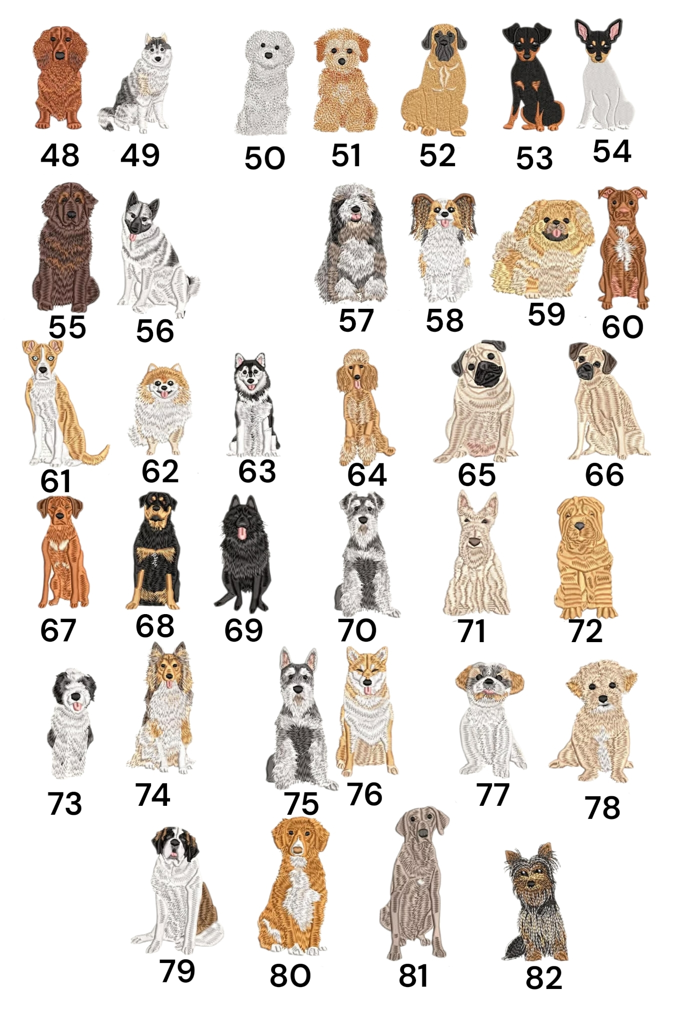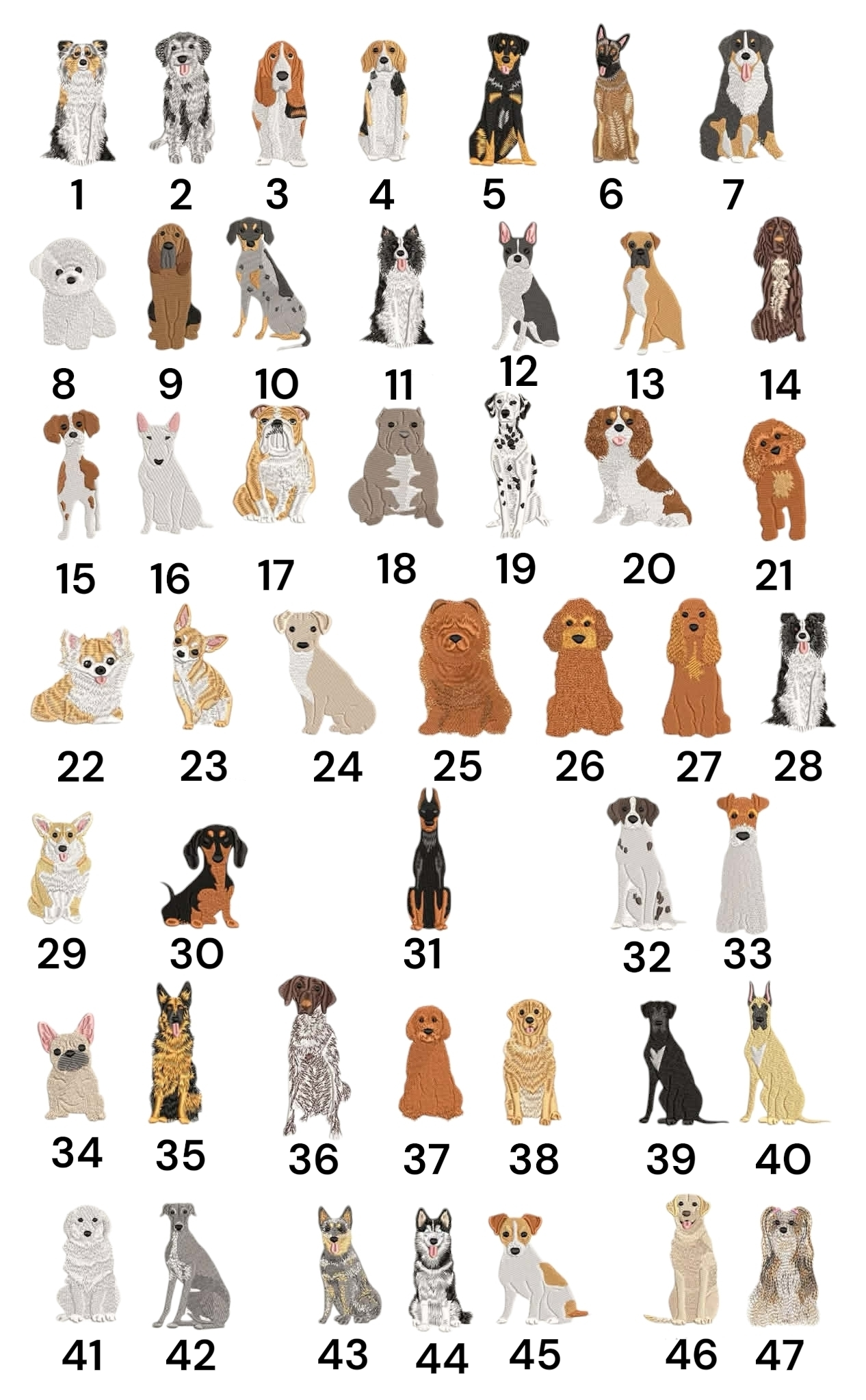 If your dog's colours don’t quite match the example shown, you’re welcome to upload a photo of your pet for colour reference. I’ll use this to adjust the thread colours as closely as possible. Please note that while I’ll do my best, an exact match can’t be guaranteed. This add-on allows for colour changes only - the design itself remains the same, and markings, shape, or details can’t be altered.