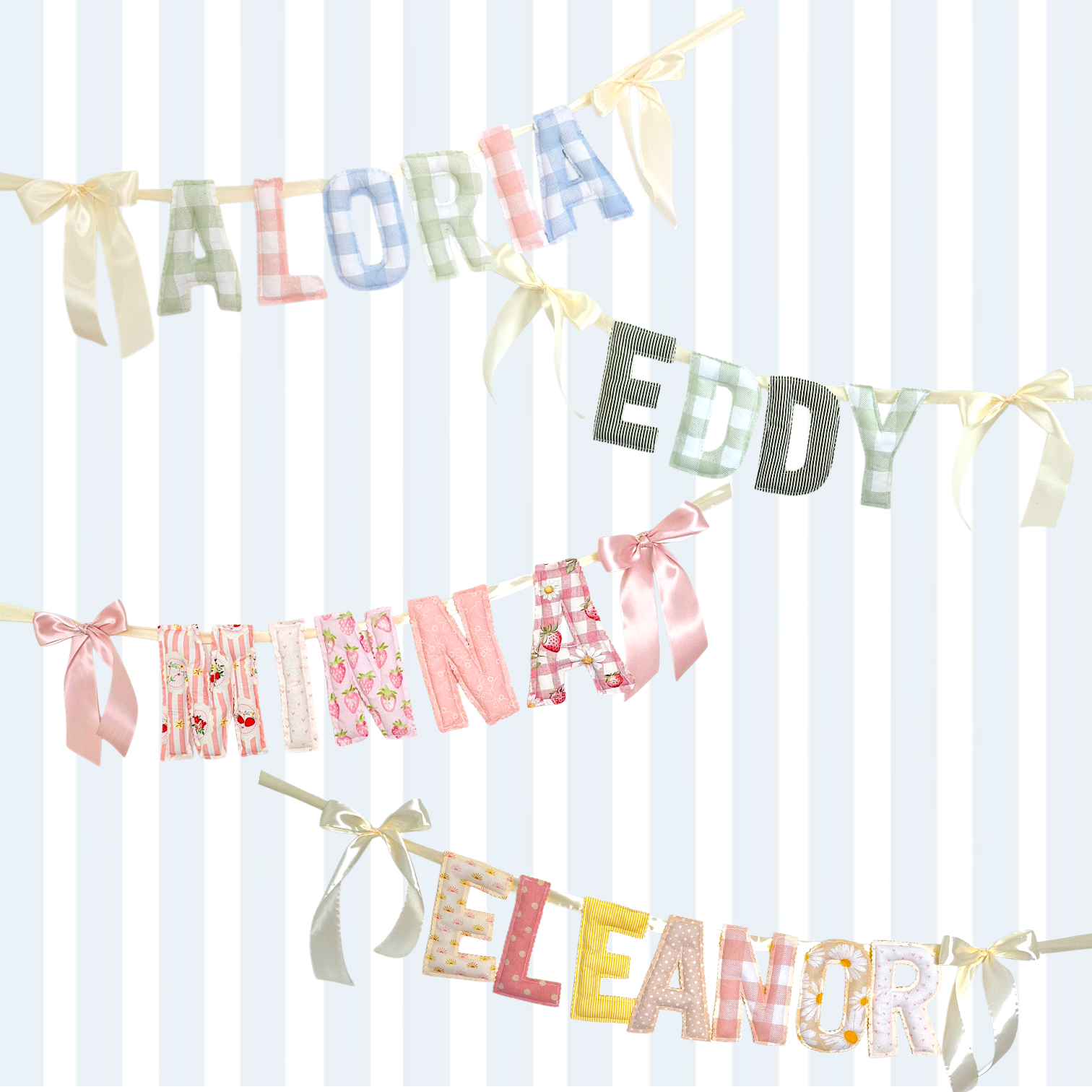Each bunting comes with satin ribbon bows, however you can upgrade the bow to a sewn fabric bow for an extra cost. 🎀