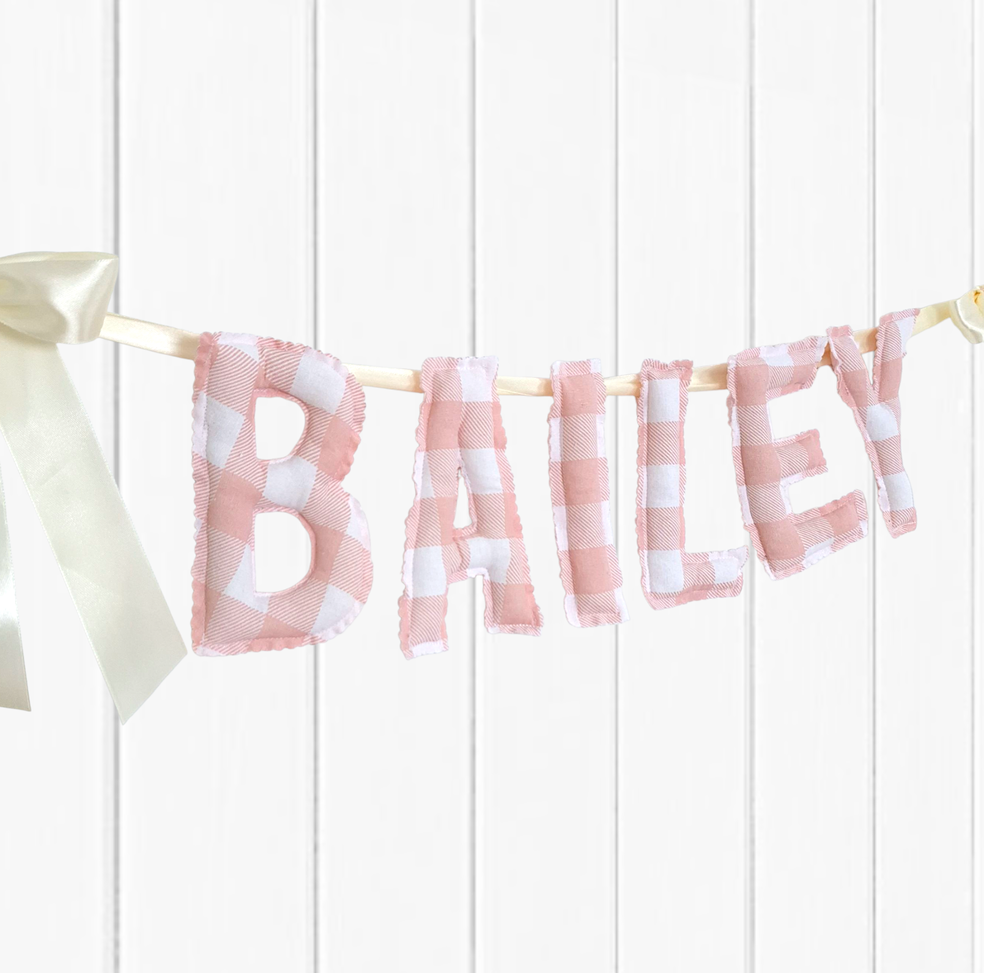 Each bunting comes with satin ribbon bows, however you can upgrade the bow to a sewn fabric bow for an extra cost. 🎀