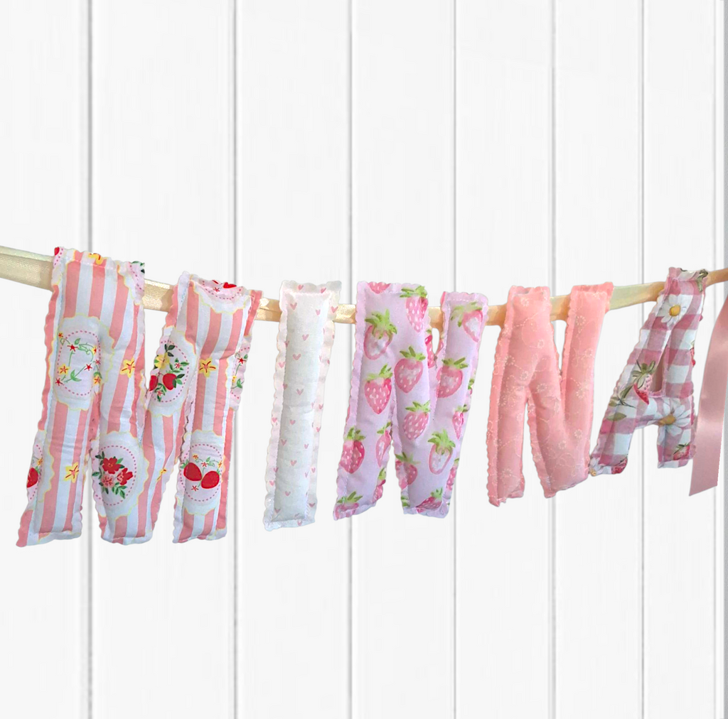This custom-made bunting is perfect for adding a cute personal touch to any special occasion or room. Handmade with love from my little home office in Brisbane using high quality fabrics. Customisable with your chosen name, phrase, or special date, it's a unique addition to weddings, birthdays, baby showers, photoshoots, or bedrooms.