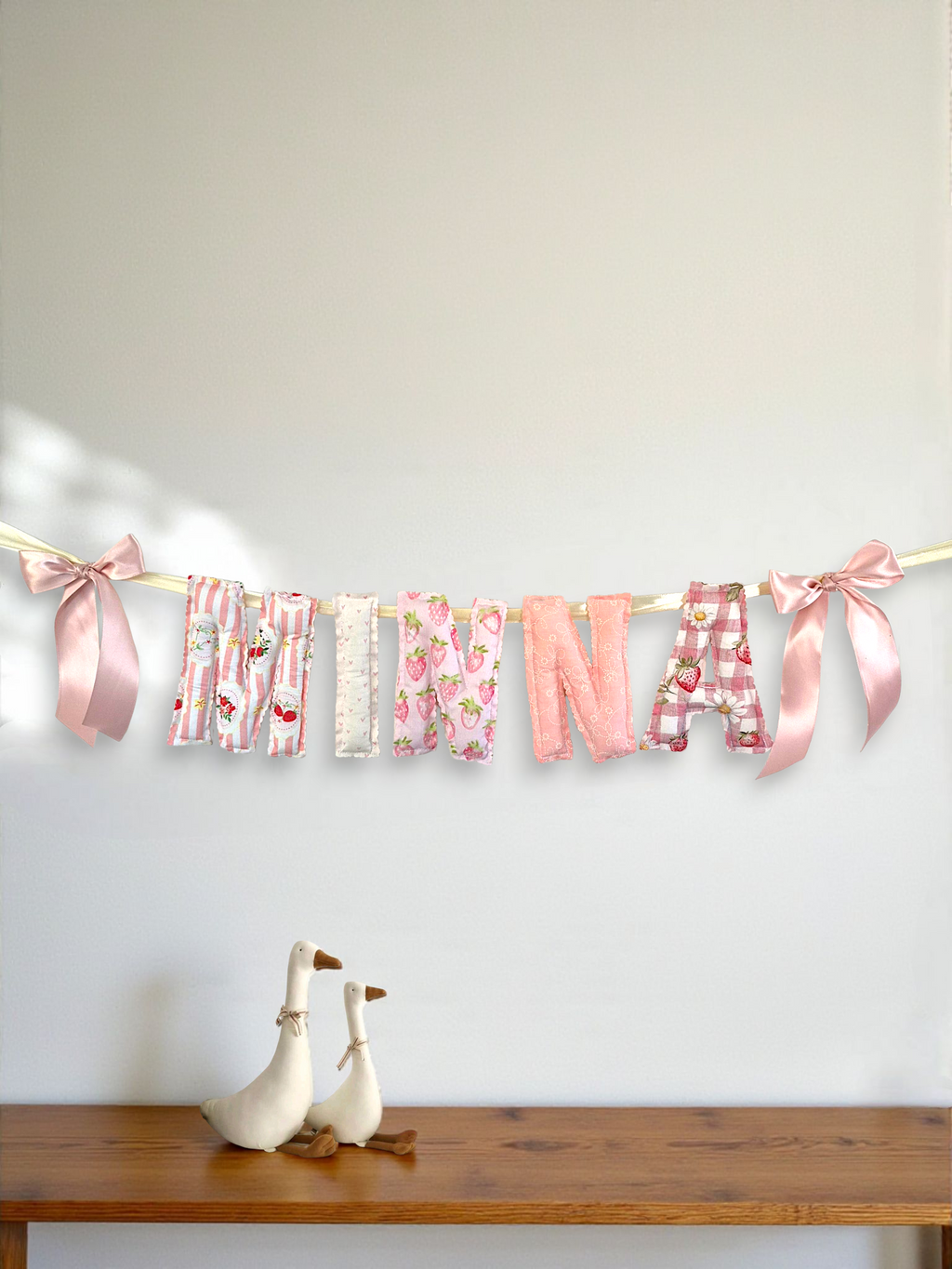 Each bunting comes with satin ribbon bows, however you can upgrade the bow to a sewn fabric bow for an extra cost. 🎀
